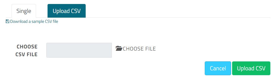 This form presents a few fields. Fill these out, and click "Create New Agent". You'll return to the Agents page, and a new Agent will be present. You can also create multiple agents at once by uploading a spreadsheet. Click the "Upload CSV" tab to place the form in the CSV upload mode. This mode allows you to choose a Comma Separated Value (CSV) file that contains information about multiple Agents. If you need an example CSV file, click "Download a sample CSV file". This fill will show you the proper column names required.