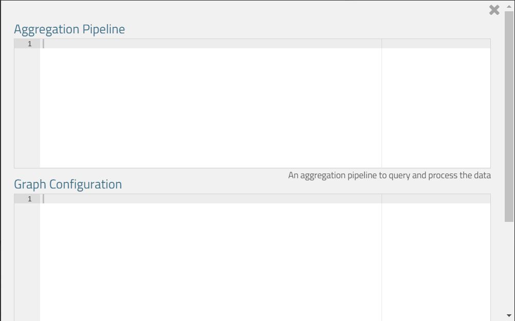 When you open the setup for the aggregation pipeline widget, you'll find 2 large text boxes - one for the aggregation pipeline query, and one for the graph configuration.