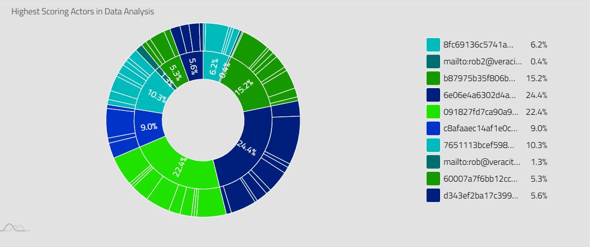 A pie chart showing the proportion of statements from each Authority. The Authority is used to identify the source of a statement, and is usually (but not always) associated with an access key.