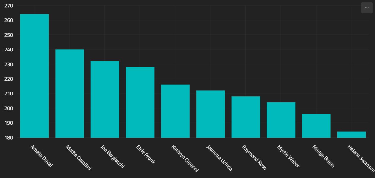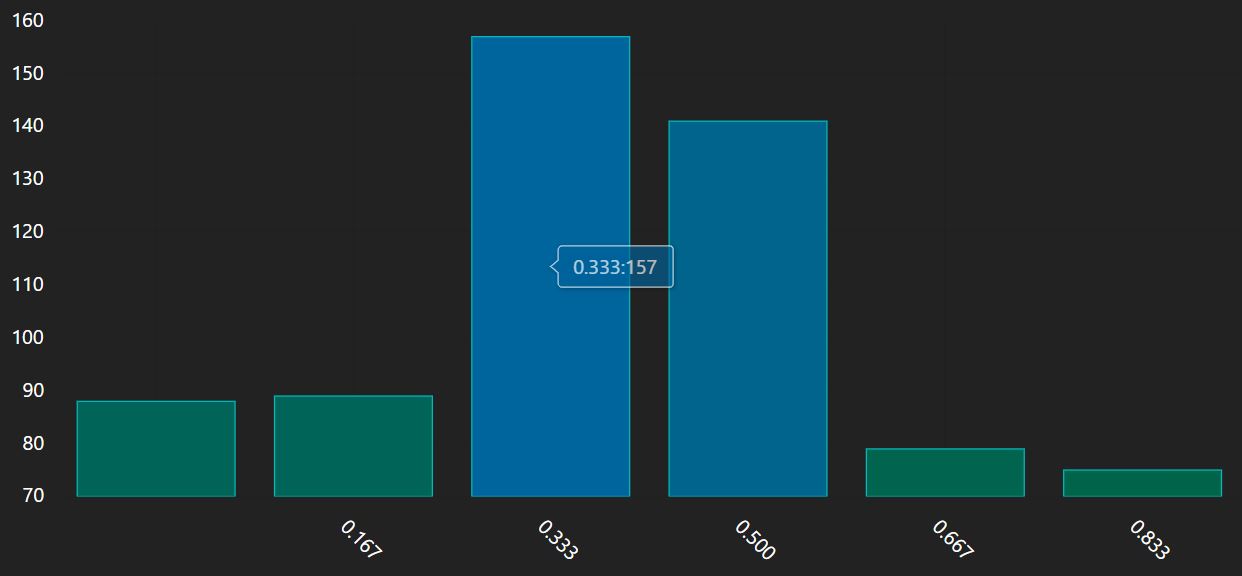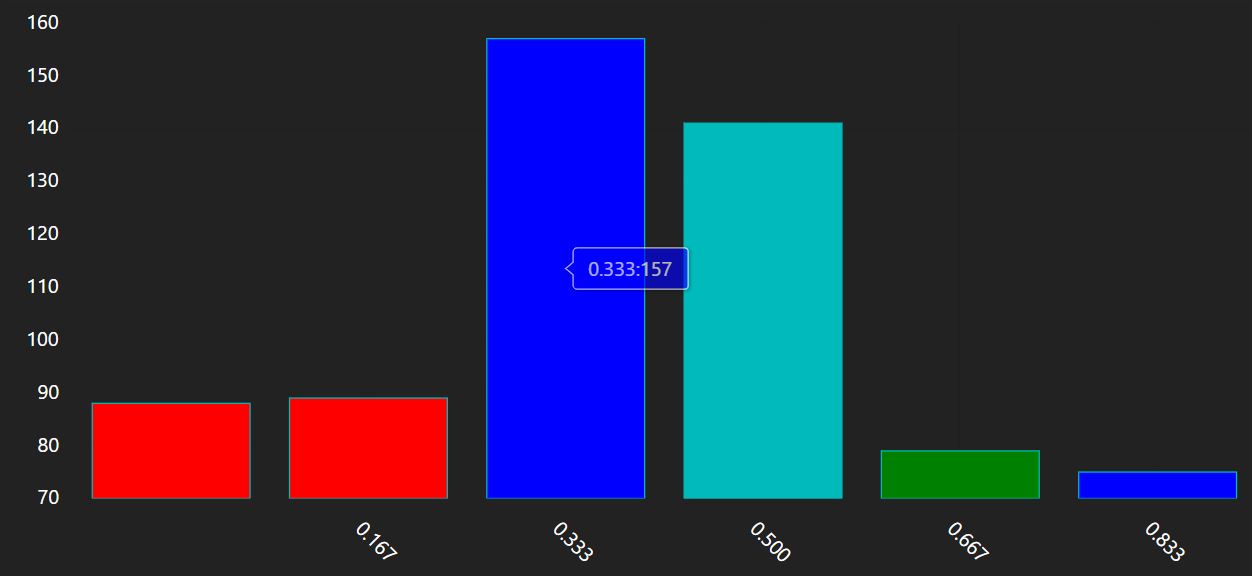 Because the rendering expressions actually return JSON objects, you can continue to process the document array after the rendering command! This little trick can be use to customize the colors, axis, labels, or any other components of a chart. Veracity uses AmCharts for rendering, so you can reference their JSON specification here to learn about all the things you can change. Heres a few examples below.